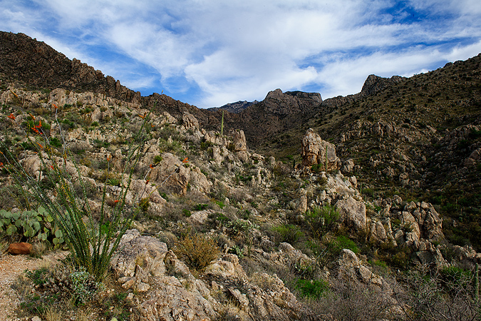 After a last night of sleep in Madera Canyon it was time to head back north for one final location in Arizona. Catalina State Park is a marvelous jewel just outside of Tucson. It was another clear and dry day this time with the heat reaching up to early summer levels. Fortunately towards the end of the afternoon, some clouds rolled in to soften the light a little. The state park reaches into the Catalina Mountains offering some great hiking trails and desert landscapes.