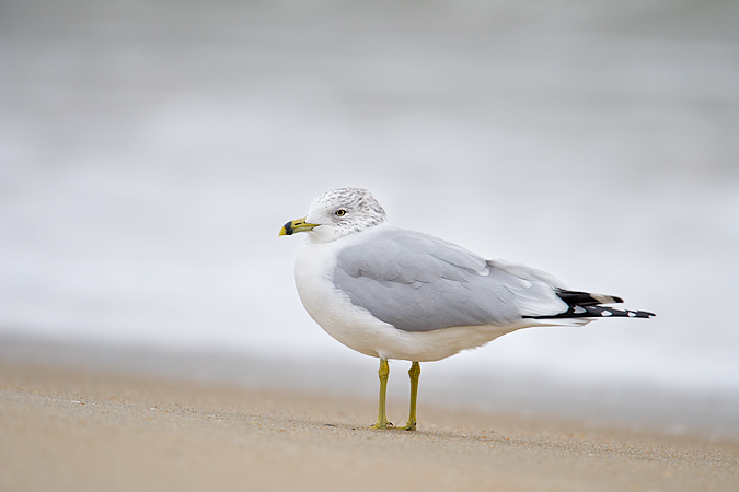 Even far from home, you see some of the same wildlife you see on a daily basis. It’s easy to overlook them since you feel that you can always get a photo of them back home. New settings can create new possibilities though, so even the mundane can be magical. For me, the deeply overcast conditions of the day added some softness to this Ring-billed Gull who was resting near the surf.