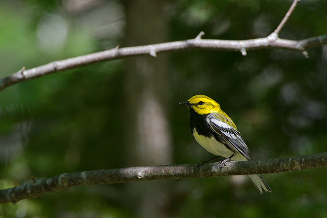 I had some other moderate luck with birds, highlighted by a singing Lincoln’s Sparrow in a small field. Just when I was about to call it a day, I ran into the most cooperative subject of the morning – this Black-throated Green Warbler. He was calling non-stop and picking off caterpillars off of the trees. Although none of the photos from the weekend were particularly good, it was fun to get out into the remote woods of the Upper Penninsula as a last act of spring before summer takes hold.