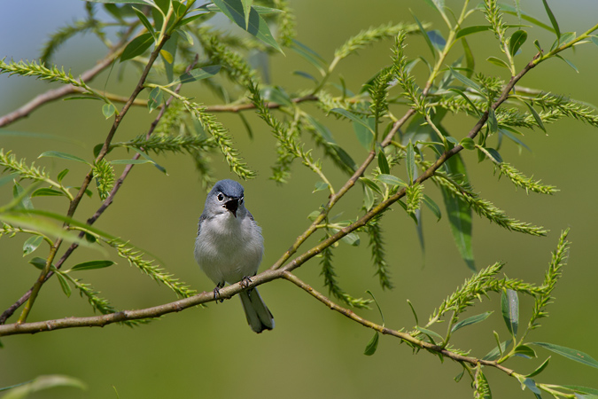 The dew quickly evaporated, leaving us with a bright sunny day. The insects were everywhere and that brought out the birds to feed. One biological trait that is taught quickly is that animals tend to have a slower metabolism at larger size. So an elephant has one of the slowest metabolisms around. But this Blue-gray Gnatcatcher is on the other end of the spectrum – tiny but bouncing around everywhere. It was singing its tiny heart out to all who would listen.